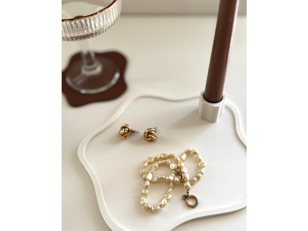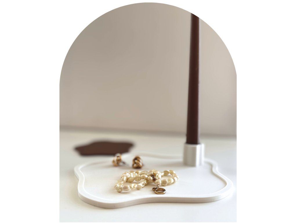 Není to jen svícen. Je to solitér, který díky integrovanému držáku na vysokou svíčku vytvoří útulnou atmosféru, ale zároveň poslouží jako elegantní základna pro vaše šperky, parfémy nebo drobnosti, které chcete mít stále na očích.