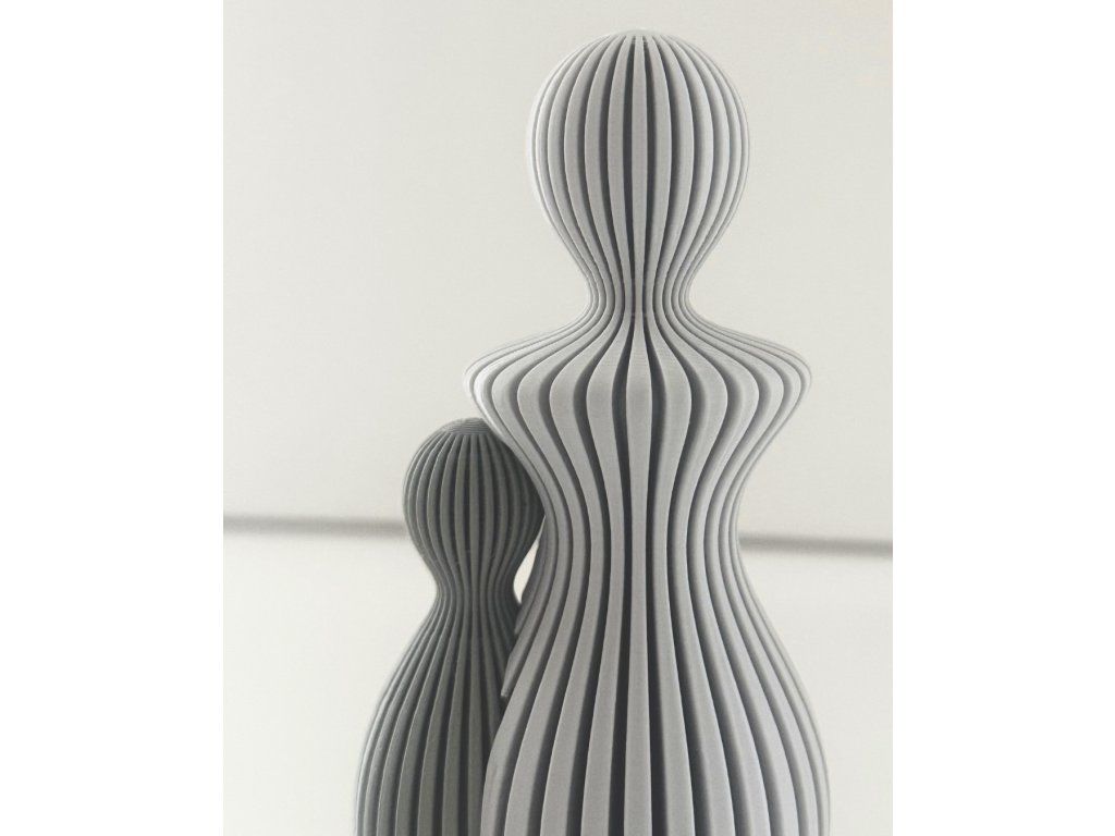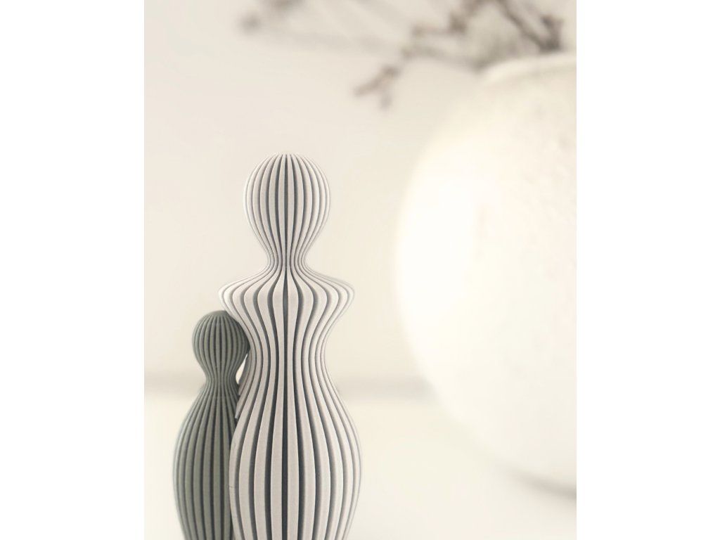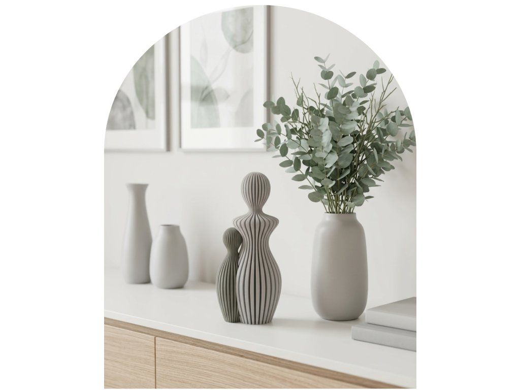 Moderní něha: Spojení surového 3D designu a organických linií vytváří kousek, který je moderní, ale zároveň hřejivý. Matný povrch v barvě šalvěje a jemné šedi působí v interiéru uklidňujícím dojmem – přesně jako maminčina přítomnost.