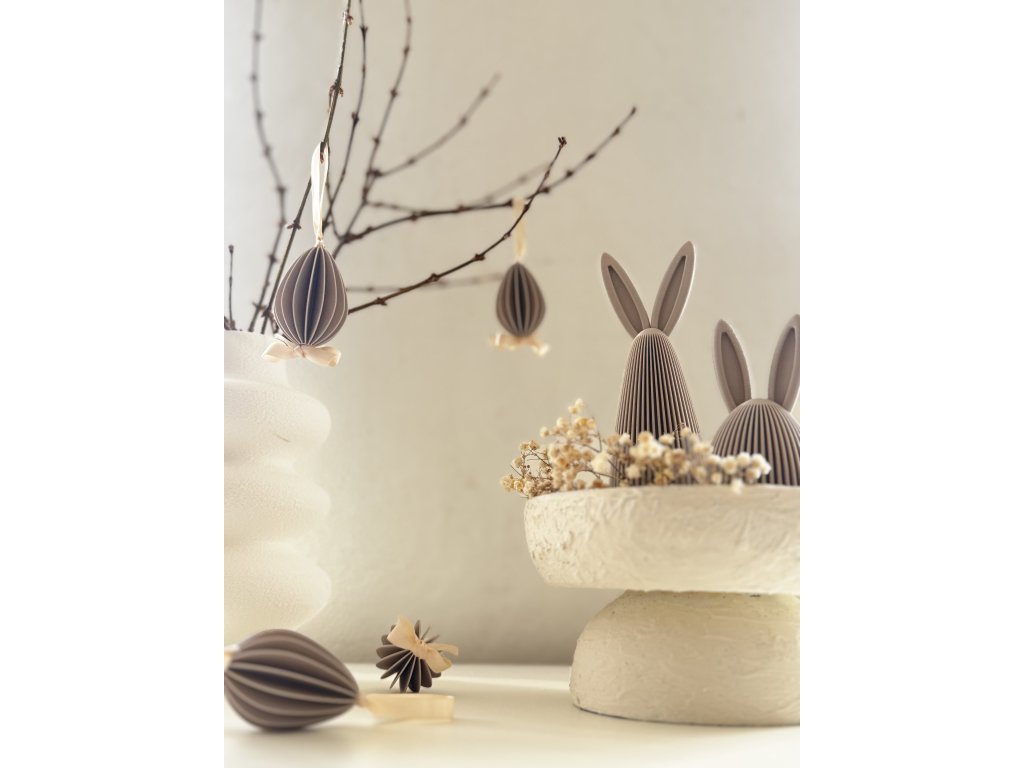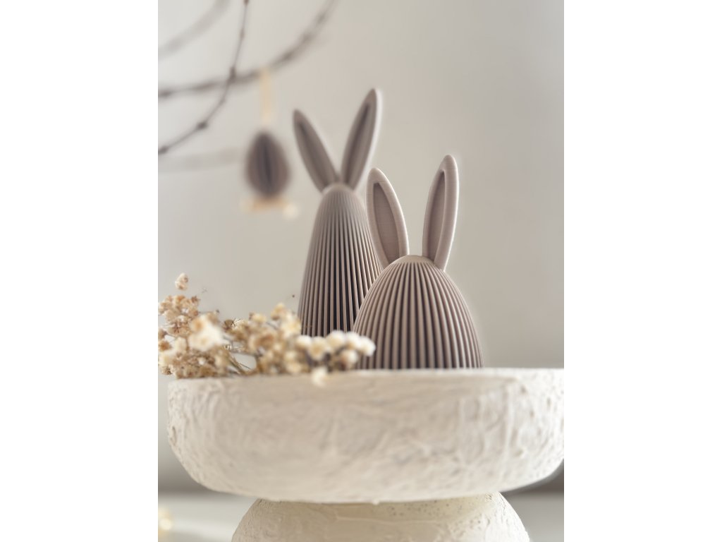 1x Designový zajíček Eggie: Roztomilý a minimalistický doplněk, který skvěle doplňuje vysokého zajíčka.