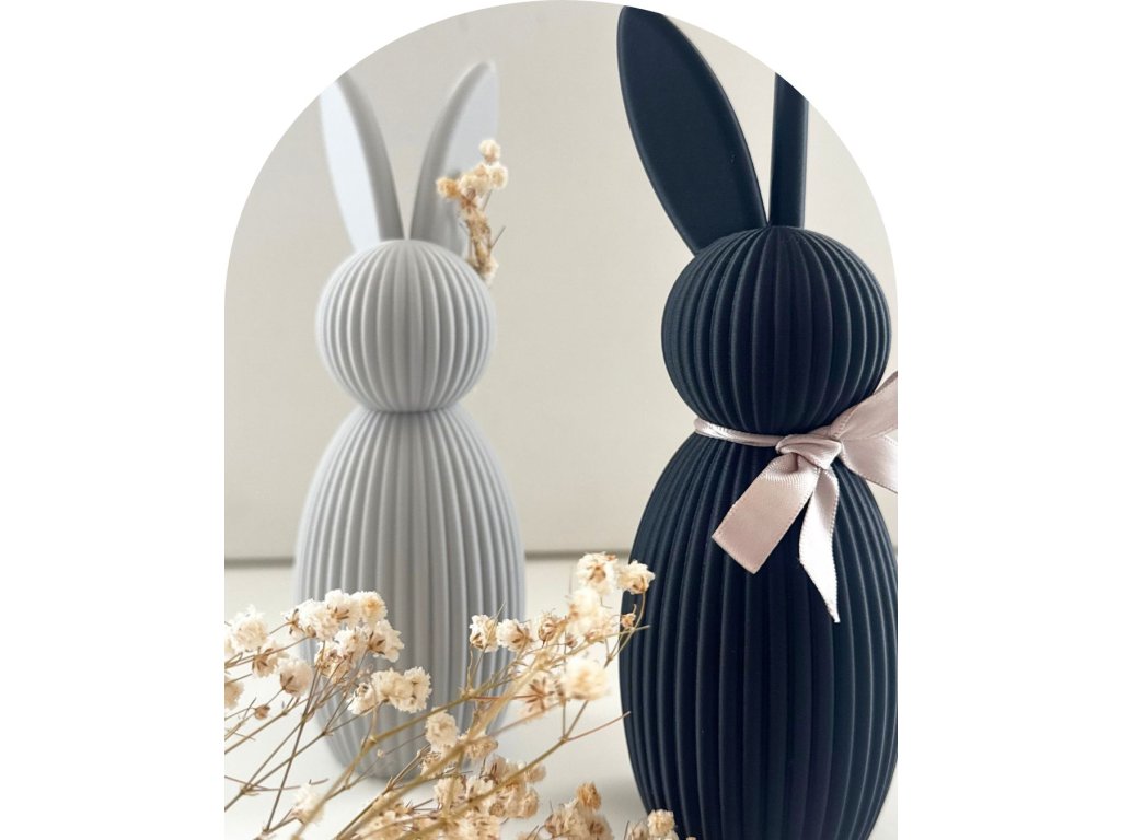 Tento zajíček se nesnaží být roztomilou figurkou, ale elegantním doplňkem. Černá varianta působí odvážně a dramaticky, zatímco šedá vnáší do prostoru klid a rovnováhu. Skvěle vyniknou jako pár, doplněný o jemnou saténovou stuhu nebo snítku sušené gypsomily.